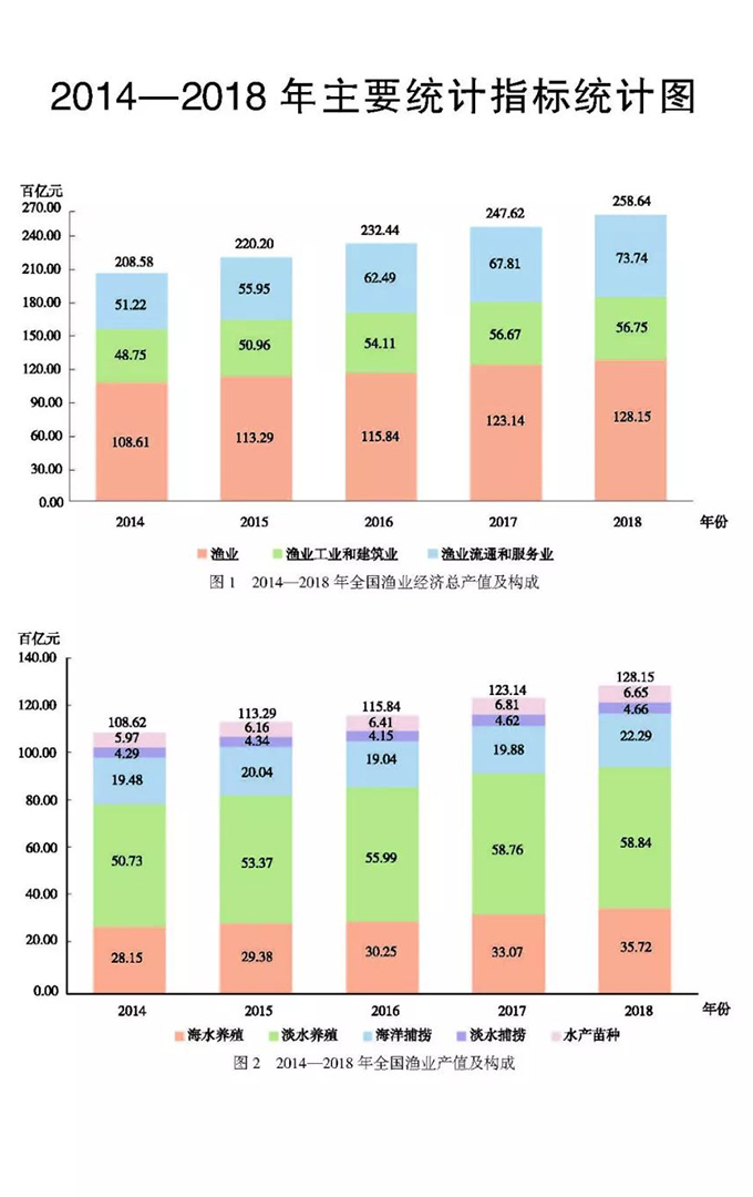 日前,由中国农业出版社出版的《2019中国渔业统计年鉴》发布,该渔业年鉴统计的是过去一年(即2018年)我国的渔业发展情况,包括渔业经济总产值、渔民人均收入、各地水产养殖面积、品种及产量,以及捕捞业方面的数据,包括渔船数量、从业人员数量,水产品加工情况等。